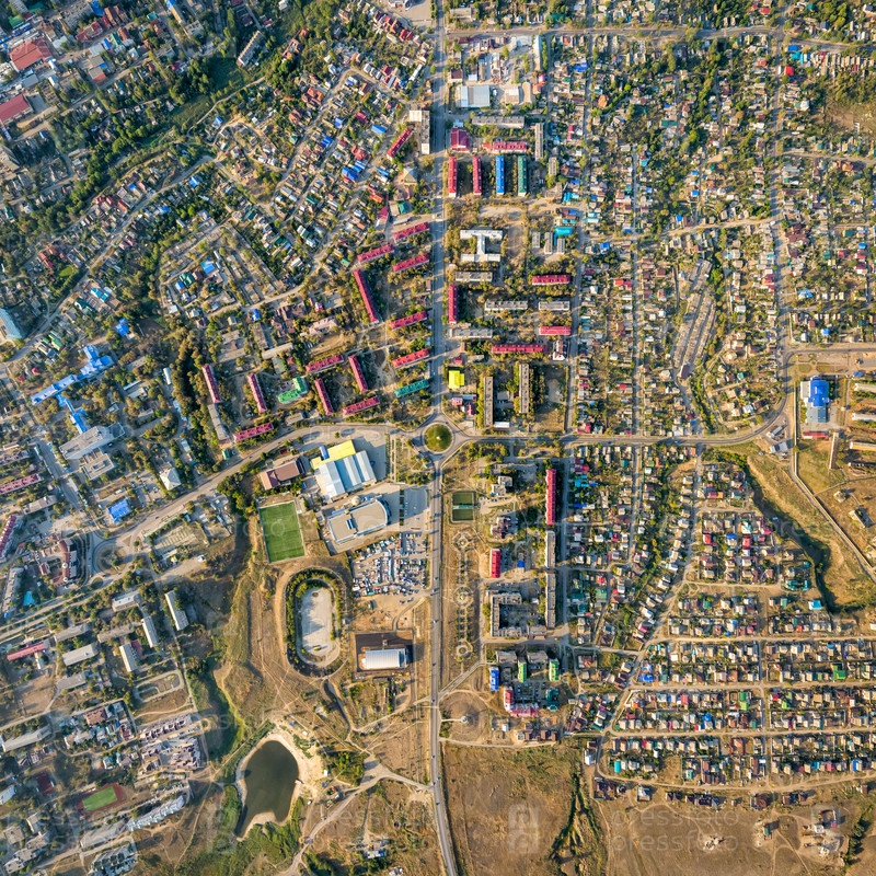 Элиста, Россия. Панорама города утром. С высоты птичьего полета