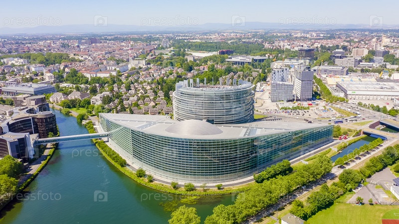Страсбург, Франция. Комплекс зданий Европарламента, вид с воздуха