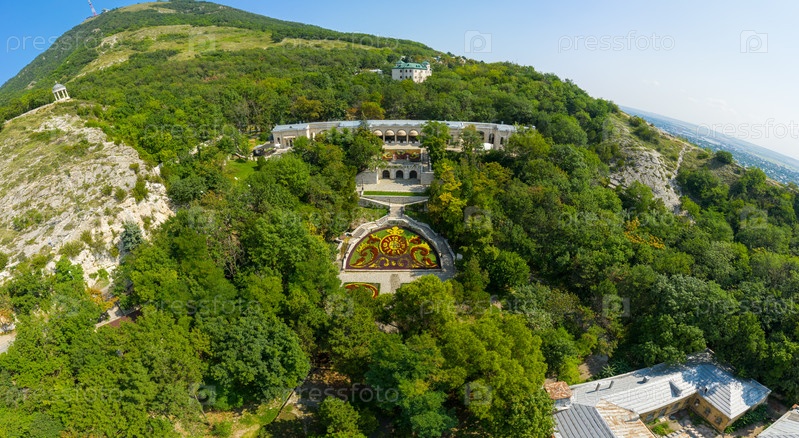 Пятигорск, Россия. Цветник с лестницей и Академической галереей – изящное здание середины 19 века. С высоты птичьего полета