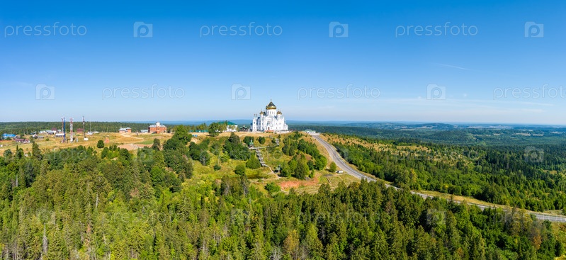 Россия, Пермский край. Белогорский Свято-Николаевский миссионерский монастырь. Крестовоздвиженский собор Белогорского Николаевского монастыря. С высоты птичьего полета