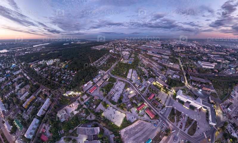 Липецк, Россия. Металлургический завод. Левобережный район. Сияние после захода солнца. Лето. С высоты птичьего полета