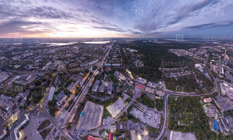 Липецк, Россия. Металлургический завод. Левобережный район. Сияние после захода солнца. Лето. С высоты птичьего полета