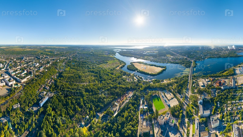 Липецк, Россия. Вид на город летом. Солнечный день. С высоты птичьего полета