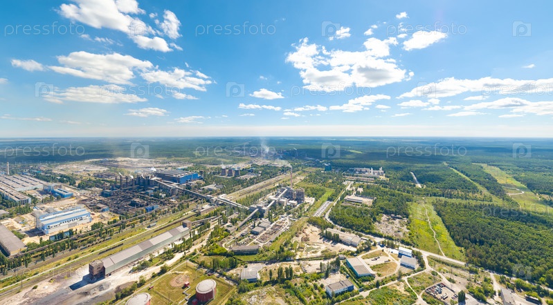 Липецк, Россия. Металлургический завод. Доменные печи. Вид на город летом. Солнечный день. С высоты птичьего полета
