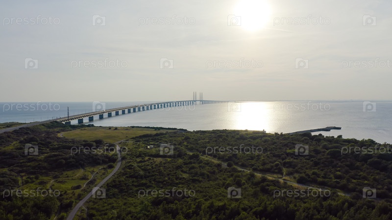 Эресуннский мост. Длинный туннель и мост с искусственным островом между Швецией и Данией. Вид с воздуха
