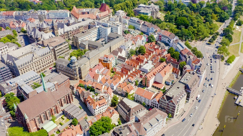 Бремен, Германия.Бремен Шнуор (Schnoorviertel).Вид в полете, вид с воздуха