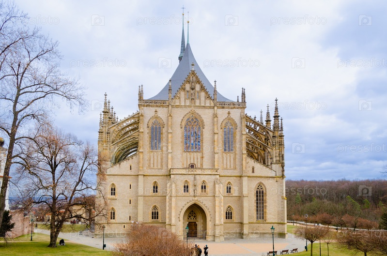 - Христианско-католический собор Святой Варвары в Кутной Горе ранней весной, готическая церковь в чешской провинции