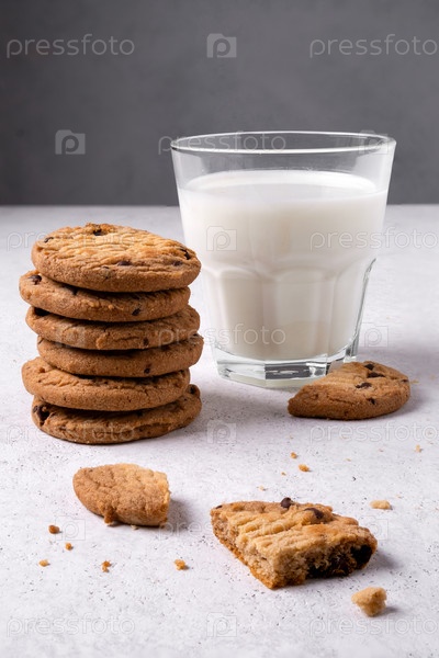 Овсяное шоколадное печенье и молоко в стакане