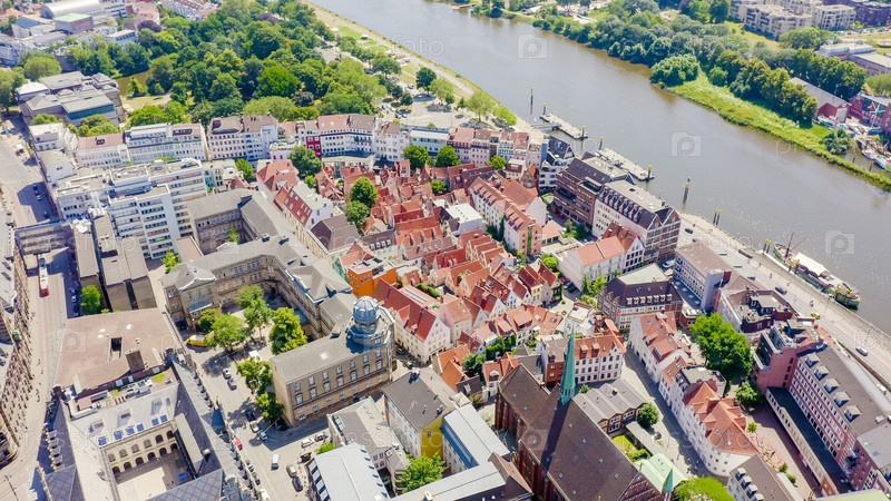 Бремен, Германия.От рыночной площади Бремена (Bremer Marktplatz) до бременского Шнурвирталя (Schnoorviertel).Вид в полете, вид с воздуха