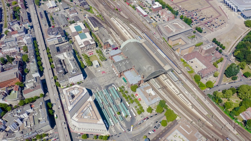 Бремен, Германия. Bremen Hauptbahnhof (по-немецки главный железнодорожный вокзал Бремена). вид в полете, вид с воздуха