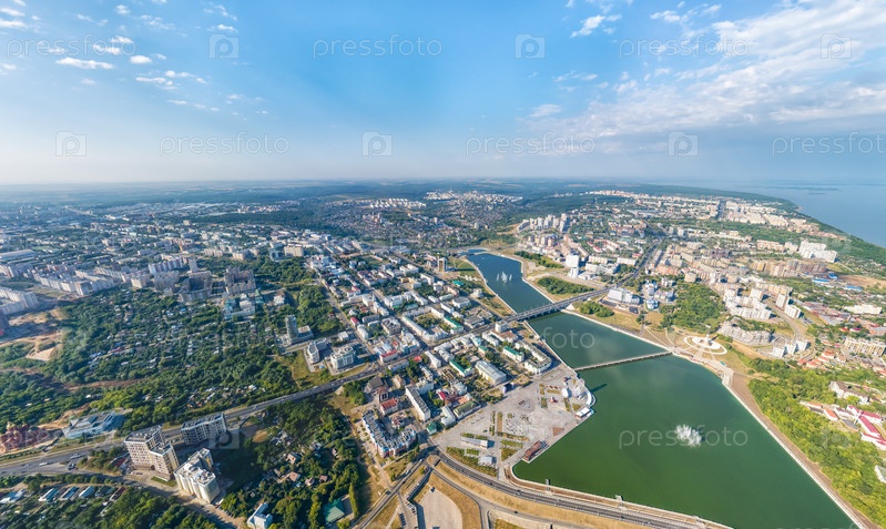 Чебоксары, Россия. Панорама города с воздуха. Чебоксарский залив. река Волга. Солнечный день. С высоты птичьего полета