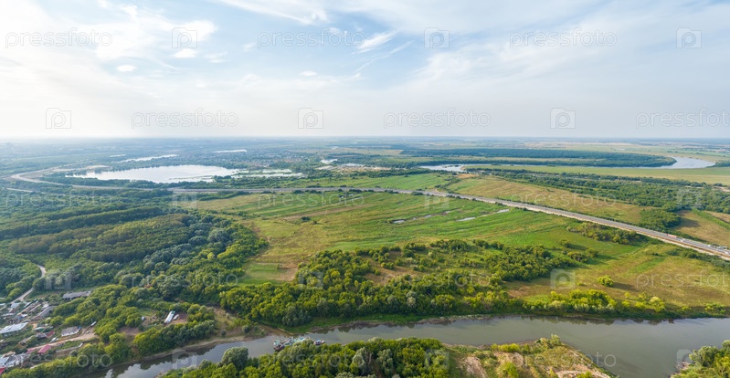 Рязань, Россия. Охраняемый луг. Река Турбеж и река Ока. С высоты птичьего полета