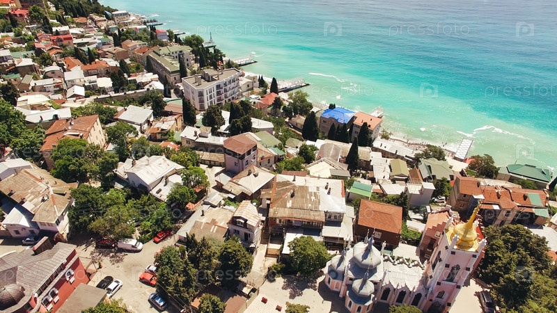 Вид сверху на городской пейзаж Ялты, Крым