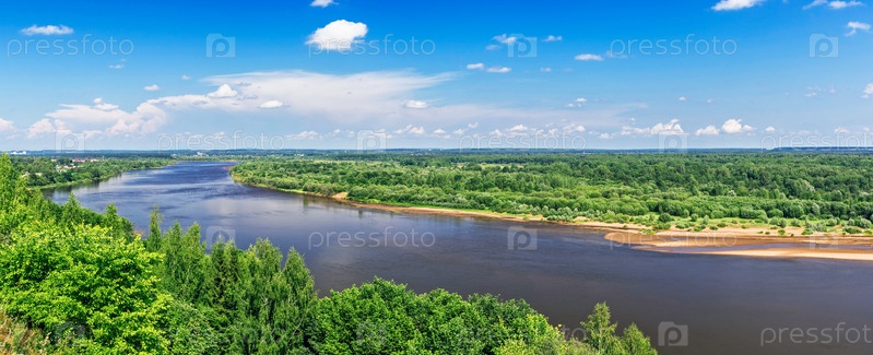 Панорама реки Вятки в солнечный летний день