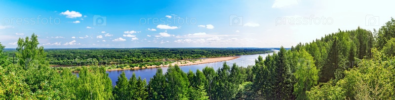 Панорама реки Вятки в солнечный летний день