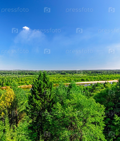Вид на лес и реку Вятку в солнечный летний день
