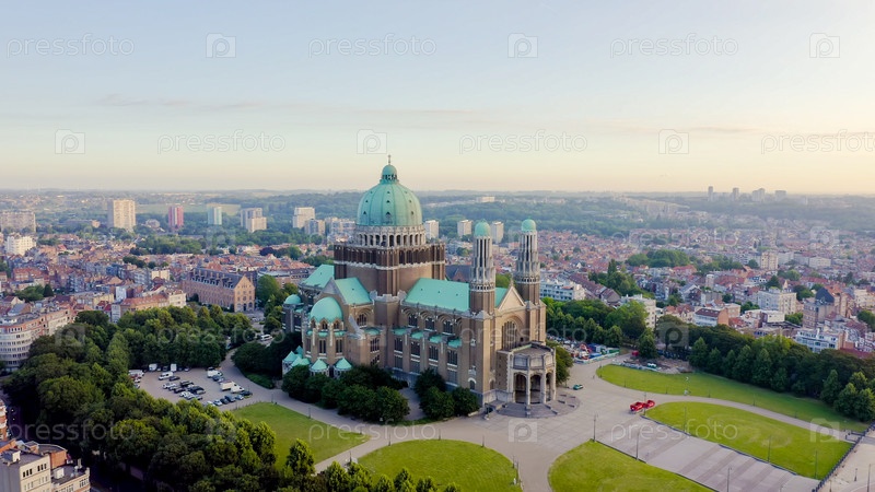 Брюссель, Бельгия. Национальная базилика Святого Сердца. Раннее утро, вид с воздуха