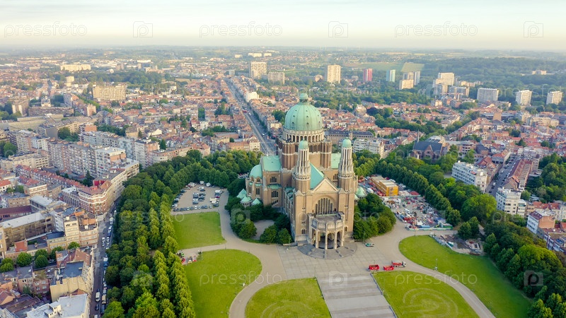 Брюссель, Бельгия. Национальная базилика Святого Сердца. Раннее утро, вид с воздуха
