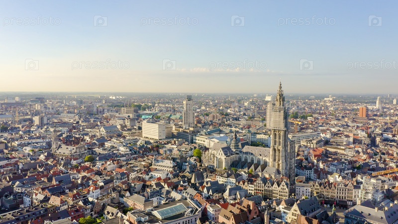 Антверпен, Бельгия Собор Богоматери (Onze-Lieve-Vrouwekathedraal Antwerp), вид с воздуха