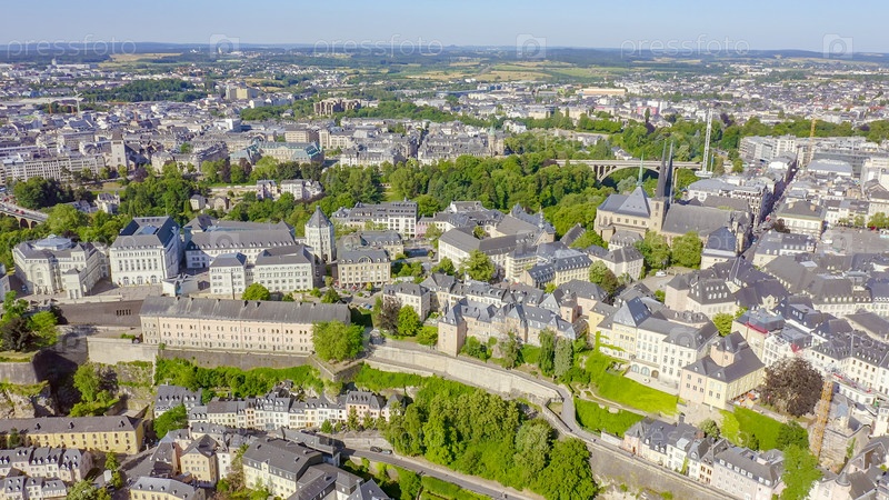 Люксембург, исторический центр города утром, вид с воздуха