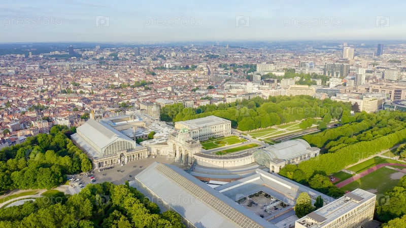 Брюссель, Бельгия. Парк Пятидесятилетия. Парк Сенкантонер. Триумфальная арка Брюсселя (Брюссельские ворота), вид с воздуха