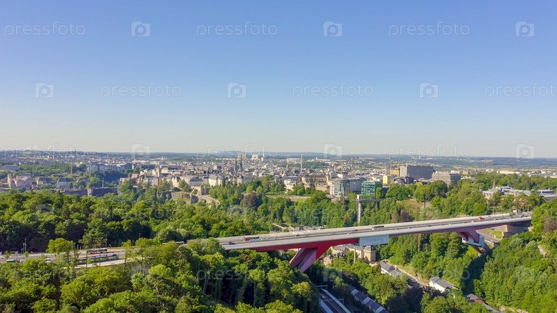 Люксембург, исторический центр города утром. Пон-Руж, вид с воздуха