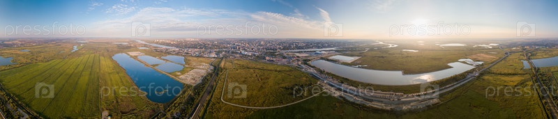 Круговая панорама Ростова-на-Дону. Стадион, река Дон. Россия, Ростов-на-Дону
