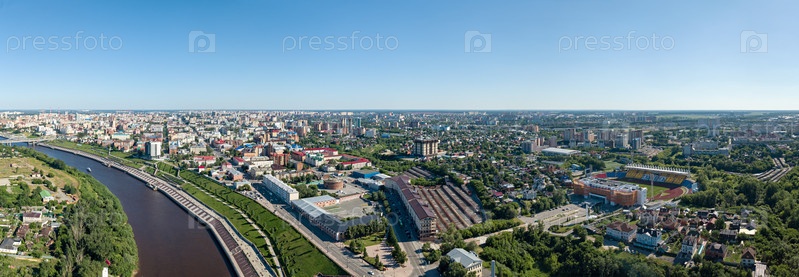 Город Тюмень, набережная реки Тура, Россия, в русском тексте - ТЮМЕНЬ. Аэрофотосъемка