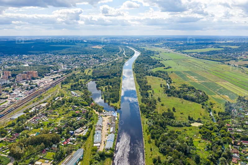 Дмитров, Россия. Центр города. Московский канал. С высоты птичьего полета