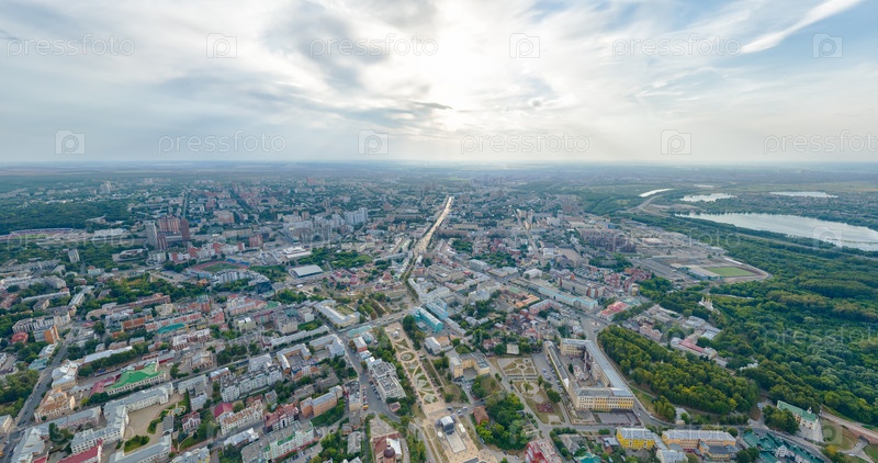 Рязань, Россия. Панорамный вид на город с воздуха. Лыбидский бульвар, Первомайский проспект. С высоты птичьего полета