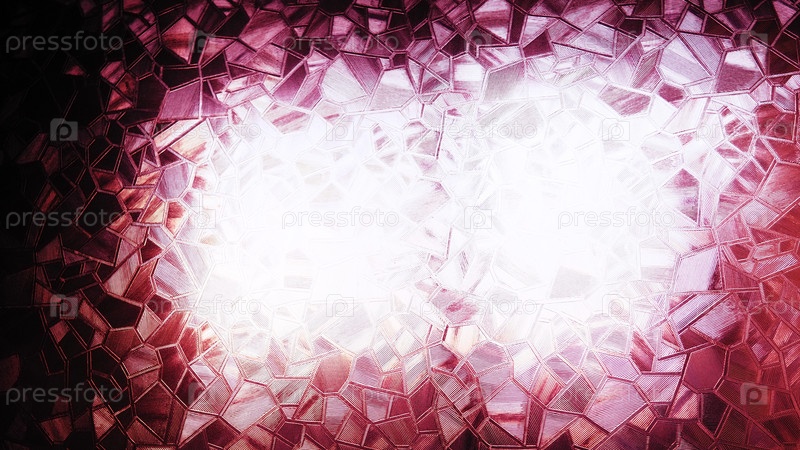 Рельефный стеклянный фон. Монохромное рифленое стекло розового цвета. Преломление света на неровной прозрачной поверхности при контровом свете. Игра ярких моментов. Черные красно-розовые области. Абстрактный фон