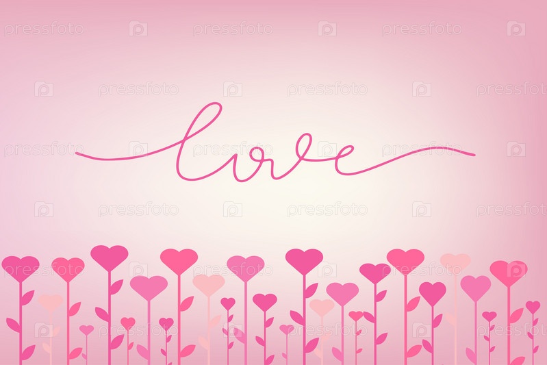 Валентина фон с сердечками - векторные иллюстрации. Набор сердец для дизайна. Непрерывная линия рисования надписи любовь