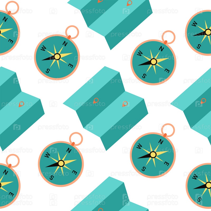 Бесшовный рисунок значка компаса и карты путешественника. Иллюстрация в плоском минималистском стиле