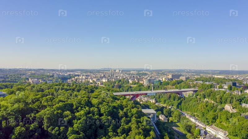 Люксембург, исторический центр города утром. Пон-Руж, вид с воздуха