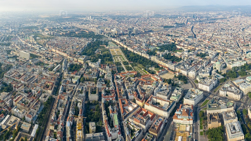 Вена, Австрия. Панорама города с воздуха. Историческая часть. Бельведер