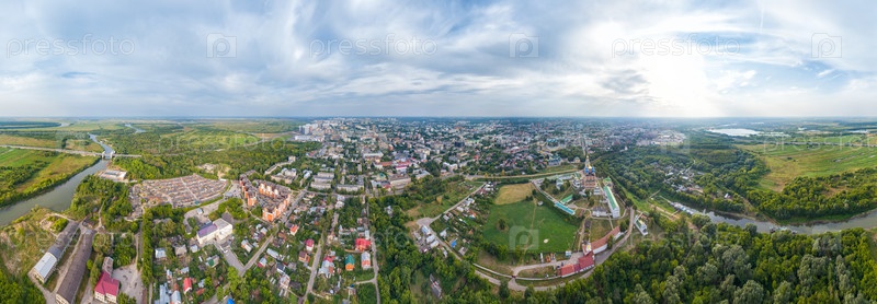 Рязань, Россия. Рязанский Кремль - Старейшая часть города Рязани. Охраняемый луг. Река Турбеж. Панорама 360, вид с воздуха