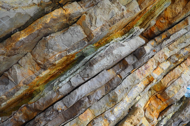 Скала из морских осадочных пород, имеющих преимущественно обломочное происхождение и характеризующихся чередованием нескольких литологических слоев. Балканы Черногория Герцег-Нови Мельине