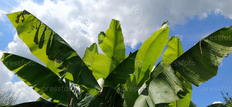 Зеленый банановый лист в природе, банановый лист