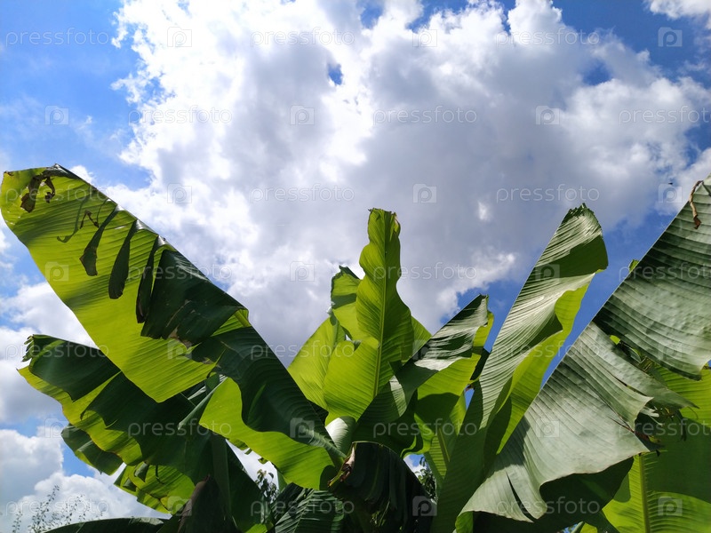 Зеленый банановый лист в природе, банановый лист