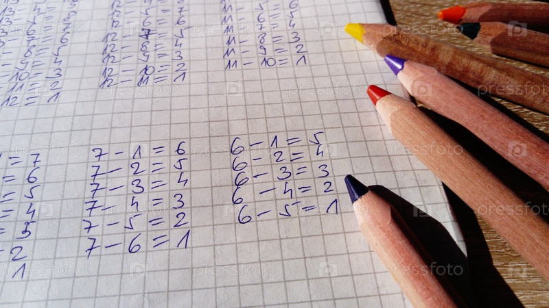 Примеры арифметических задач пишут столбиками на листе в клеточку