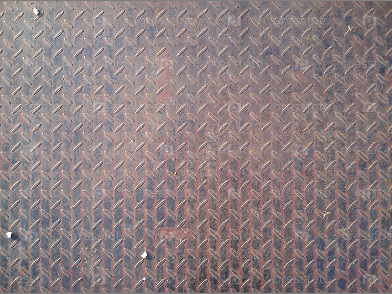 Фрагмент металлического моста с неровной поверхностью. Прочный сплав с противоскользящим рельефом. Несколько мелков белых камушков