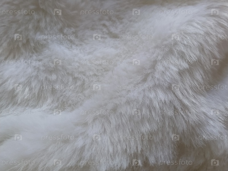 Белый искусственный мех. Крупный план. Частично расфокусированное фото. Пушистые ворсинки
