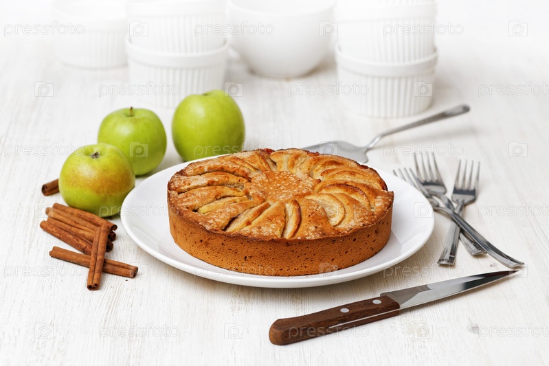 Домашний яблочный пирог на белом столе