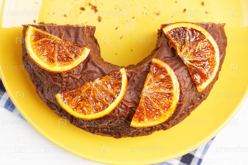 Домашний шоколадный чизкейк с ломтиками миндаля на белом деревянном столе. Вид сверху