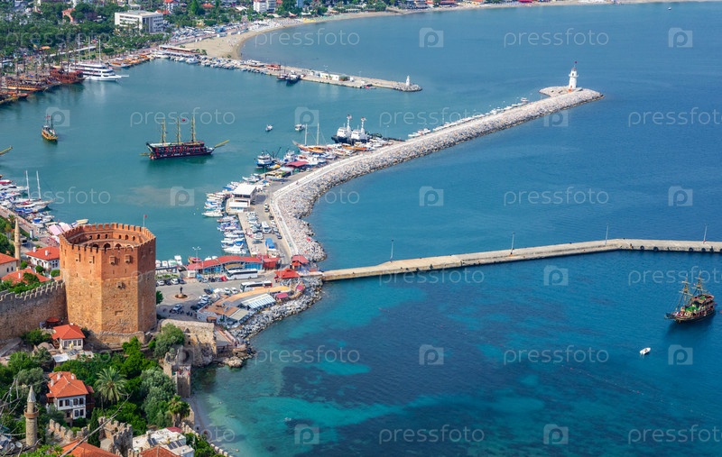 Вид на Аланию и Кызыл Куле с крепости Аланьи. Турция