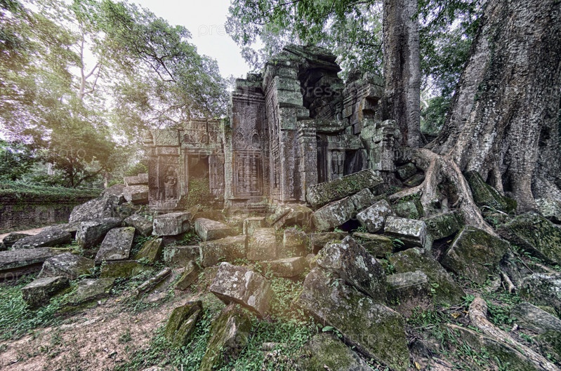 Древние каменные руины храма Та Пром, Ангкор, Камбоджа