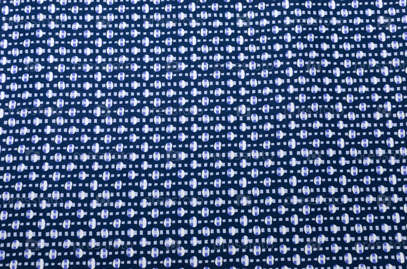 Хлопчатобумажная ткань, белый и синий геометрический узор на темно-синем
