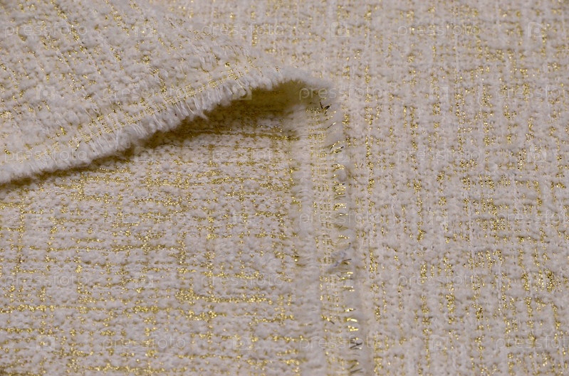 Шерстяная ткань с акрилом и люрексом цвета слоновой кости с золотом