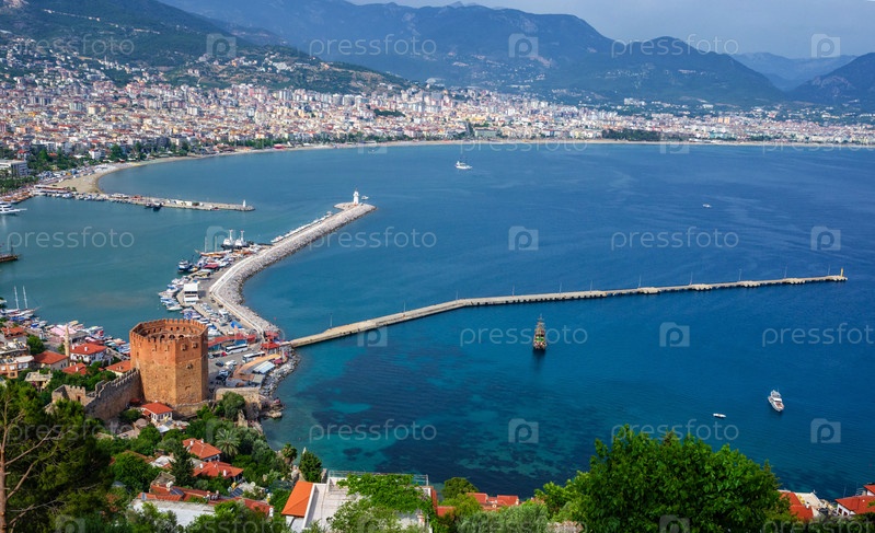Вид на Аланию и Кызыл Куле с крепости Аланьи. Турция