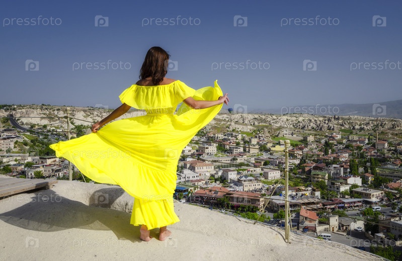 Женщина стоит в национальном парке Гереме в Каппадокии, Турция